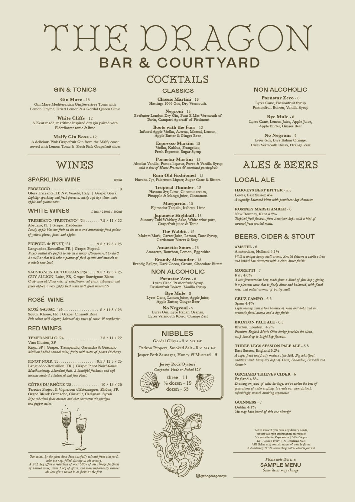 Nestled next to the restaurant, The Dragon boasts a relaxed, convivial atmosphere.